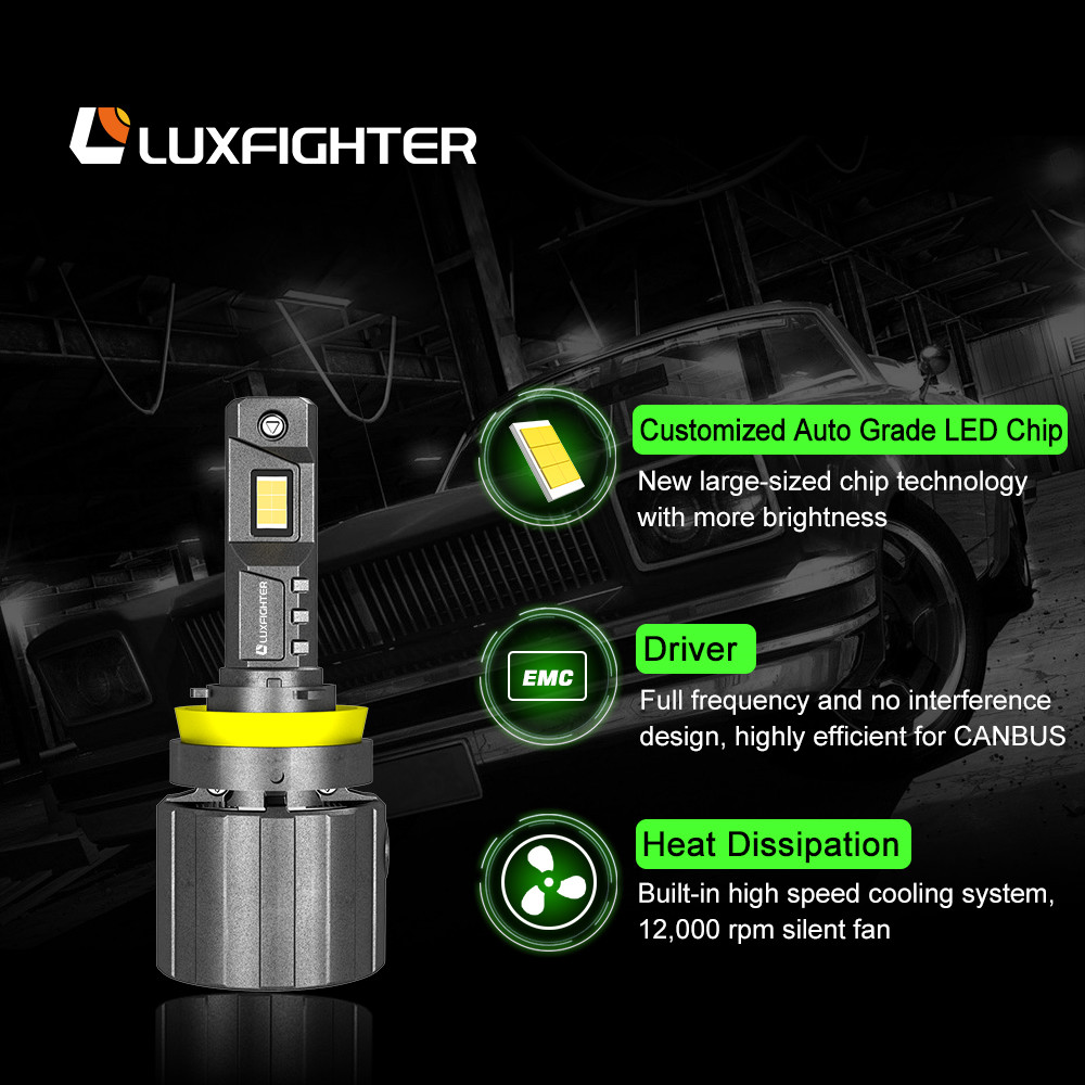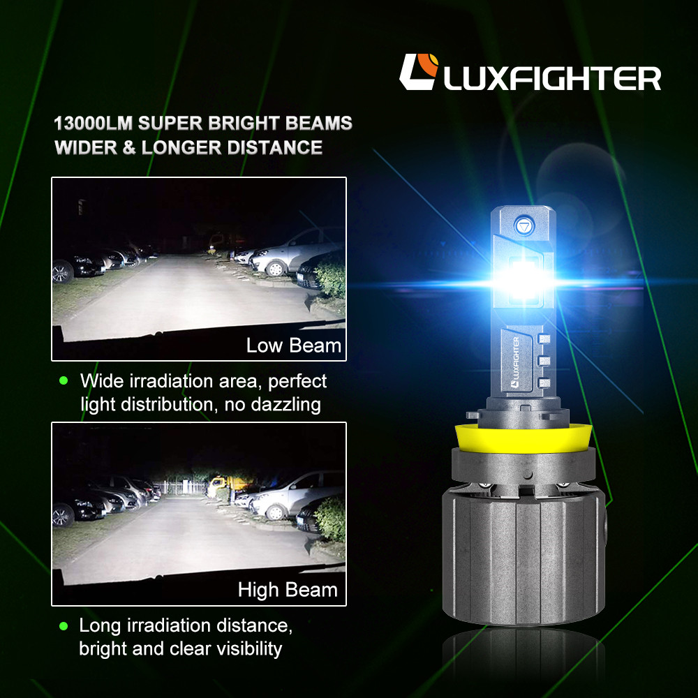 1. A 600% -os fényerő javult: A Luxfighter korszerűsített H7 LED -izzók szettenként 130W -osak, akár 600% -kal fényesebbek, mint az OEM halogén LED -es izzók. 6000-6500K Cool White és 12 000 lm egyértelmű látást hoz a vezetés során